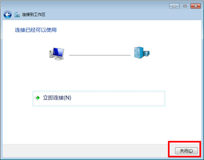 当 "连接已经可以使用" 消息出现,点击 "关闭" 按钮。请勿点击 "现在连接"