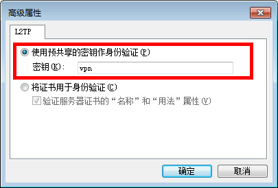 在 "IPSec pre-shared key" 字段指定 "vpn"