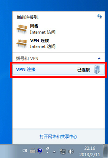 如果成功建立 VPN 连接, VPN 连接图标出现在屏幕上,当您单击 Windows